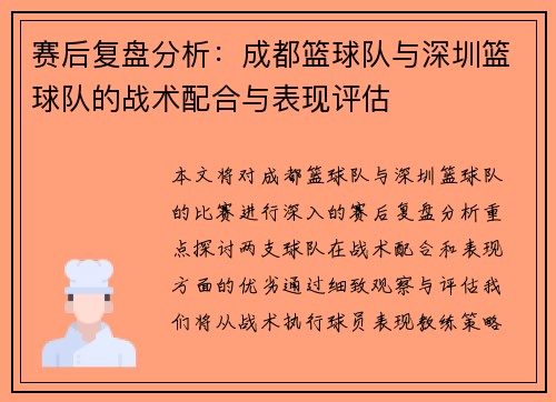 赛后复盘分析:成都篮球队与深圳篮球队的战术配合与表现评估